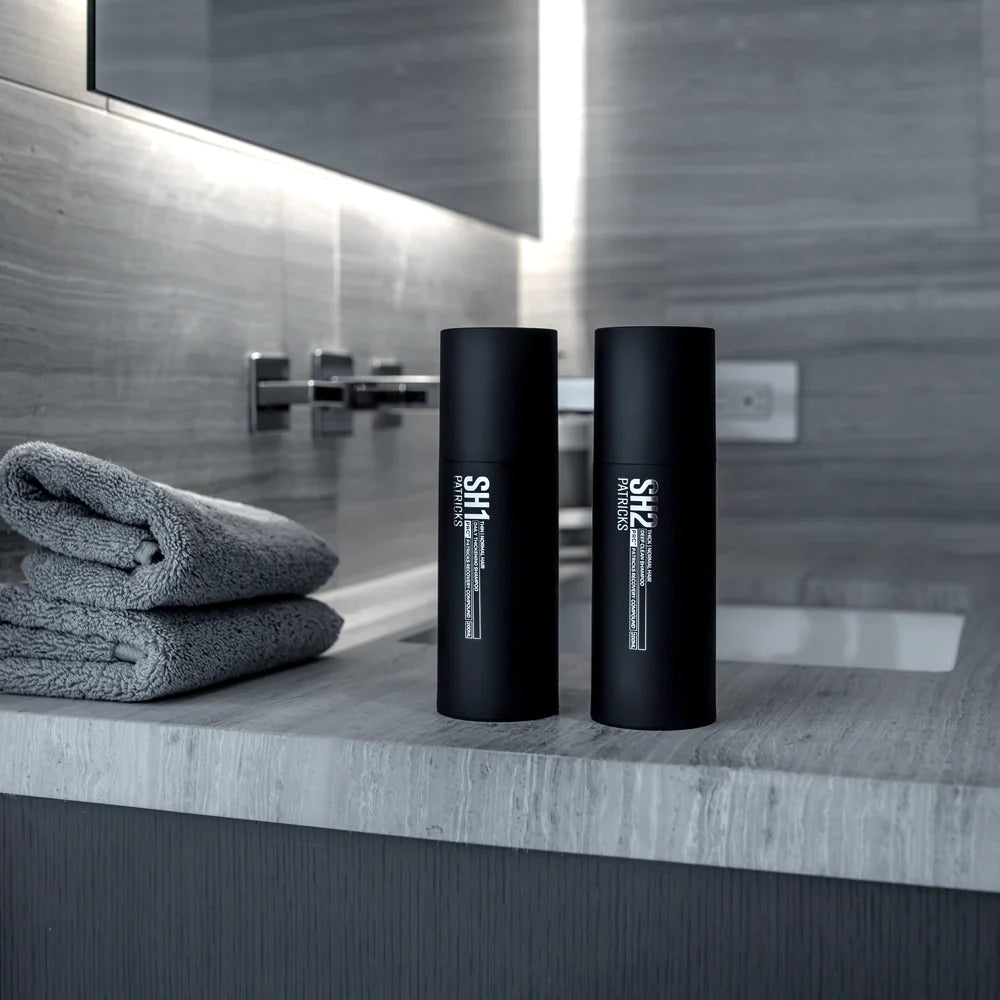 SH1 Daily Thickening Shampoo de Patrick's est spécialement développé pour les hommes souffrant de cheveux fins et/ou de perte de cheveux. Ce shampooing est riche en protéines fortifiantes pour maximiser la densité des cheveux. Ce shampooing agit dès le premier lavage, rendant les cheveux plus épais et plus volumineux sans les alourdir.